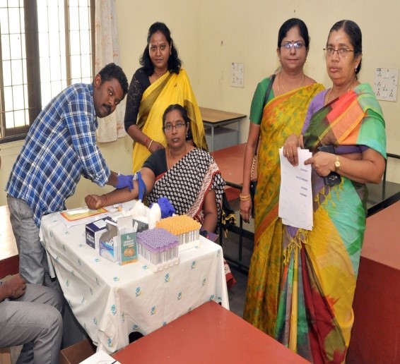 As a novel initiative, Women’s Studies Centre organized a medical camp for all the teaching and Non teaching female faculty of our college on 01.08.2019. A team of female doctors from Apollo Hospitals visited the college campus to diagnose and ensure the health of the faculty. The tests included the basic tests for diabetes, hypertension along with ECG and Pap smear. It was arranged in the premises of the ladies hostel with the permission of the Principal and the warden of our college. 52 women faculty members participated in the camp and were very appreciative of the centre’s maiden attempt. Our teachers felt very happy and thankful to the management for the opportunity to keep track of their health. Three Gynaecologists offered their service to the faculty. As a follow up, some of our teachers went to Apollo hospital for a scan and further follow up treatment. The male teachers put forward a request to hold a similar camp for the men and our principal arranged for one in the following week.