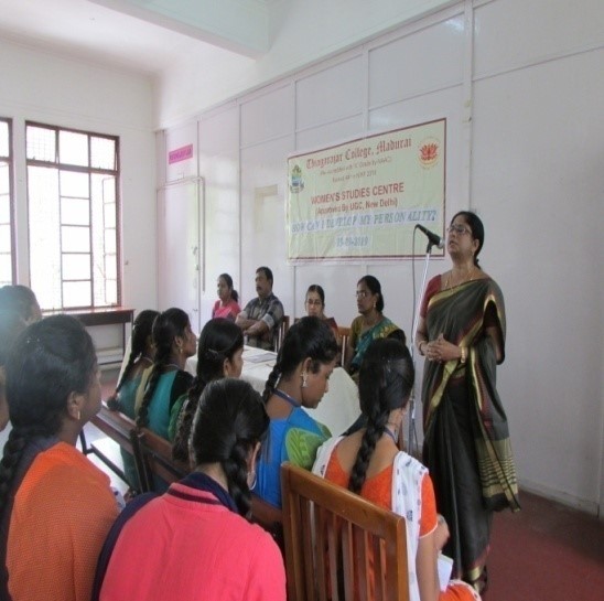 Dr. V. Subathra Devi, Director, Women’s Studies Centre welcomed the gathering. Dr. I. Chitra, Coordinator introduced the Chief Guest. Ms.K.Gangadevi, Coordinator, Part V Gender Studies proposed the vote of thanks. Around 110 students participated in the programme.