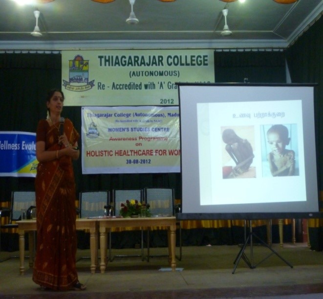 In which she extolled the need for creating awareness on holistic healthcare among women students and staff members. Dr.A.Thamaraichelvan, the Principal, felicitated the programme. Dr.Sudha Dheep, Gynaecologist,