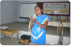 Mr. Francis Xavier sensitizing the participants on the role of women in combating plastics pollution and controlling it through reducing the usage of plastics.