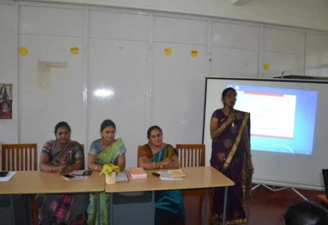 | Dr. T. S. RAMYALAKSHMI, ASSISTANT PROFESSOR, DEPARTMENT OF ZOOLOGY, THIAGARAJAR COLLEGE, MADURAI, DELIVERING THE ADDRESS ON“MENSTRUAL MANAGEMENT & HYGIENIC PRACTICES” |