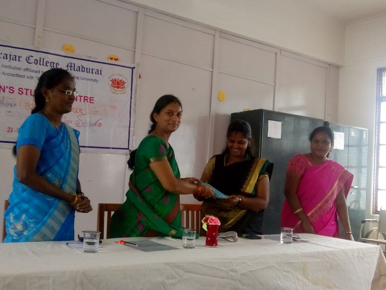 Women’s Studies Centre of Thiagarajar College, Madurai organized an awareness programme on the topic “Social Violence Against Women”. The event was held on 21.12.2018 for the benefit of UG girl students. The programme was presided over by Dr. D. Pandiaraja, Principal, Thiagarajar College, Madurai. Dr. I. Chitra, coordinator welcomed the gathering. Dr. D. Anbugeetha, Director introduced the chief guest, Mrs. P. Shubarani, Advocate, Madras High Court, Madurai Bench, Madurai. The chief guest elaborated on the various forms of violence steeped on women in the society and conducted a technical session on how to combat and tackle the men who turn violent against them and their counterparts in the society. The programme came to a close with a note of thanks by Ms. K. Gangadevi, programme officer, Part V Gender Studies, Thiagarajar College, Madurai. The programme was attended by 120 students.