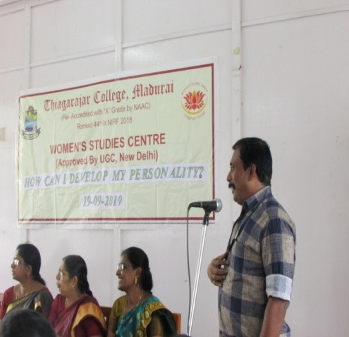 The Centre organized a Guest Lecture on “How Can I Develop My Personality” for the students on 09.09.2019.Capt. N. ArunNagendran, Associate Professor of Zoology, Thiagarajar College, Madurai, was the guest speaker. He spoke on how to improve one’s personality. He highlighted the idea that one’s personality includes one’s individual differences from other people, how one thinks, feels & behaves. He discussed the various personality traits commonly found among student community and insisted that personality development basically dpends on one’s desire to explore a better version of themselves.