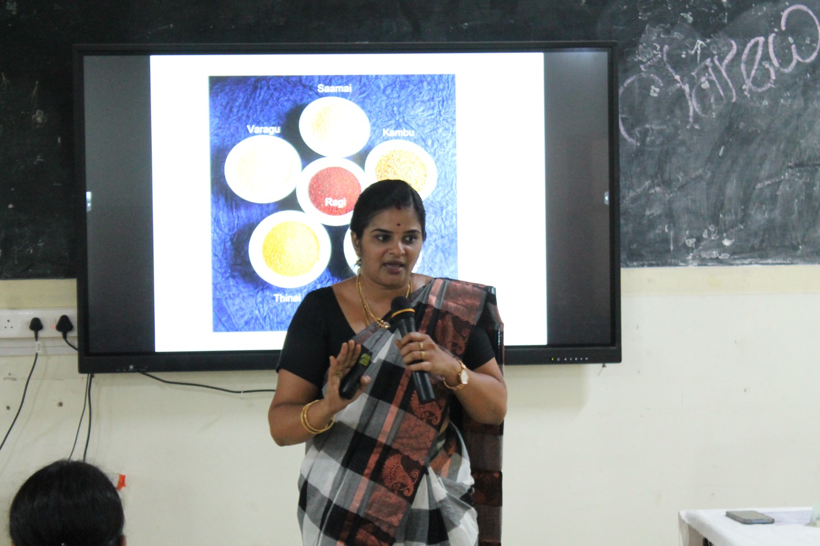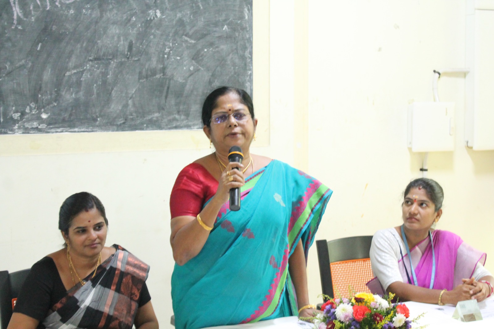 The Women’s Studies Centre organised an awareness programme on the title “Health and Sanitation for Sanitary Workers” for the women of the housekeeping unit of Thiagarajar college. The objective of the programme was to reach out to the grassroots of the society and empowering them with nutritional and health awareness. 26 women of age group ranging from 25 – 65 participated enthusiastically in the programme. The resource person, Dr. N. Aruna, Assistant Professor of Botany, Thiagarajar college displayed a picturesque power point with appealing pictures to the delight of the participants, who interacted with her and cleared their doubts regarding the nutritional value of the food they consume every day. They were happy with the tips they received to enrich their diet with simple, affordable additions of fruits and vegetables. The director Dr. V. Subathra Devi reiterated the vision and mission of the centre in her welcome address, thanked the housekeeping staff for their yeomen service and motivated them to aspire for perfection in their profession. Dr. Selvarakku, Assistant Professor of Tamil delivered the vote of thanks quoting the motivational lines of the Tamil poet Subramania Bharathi on women empowerment.